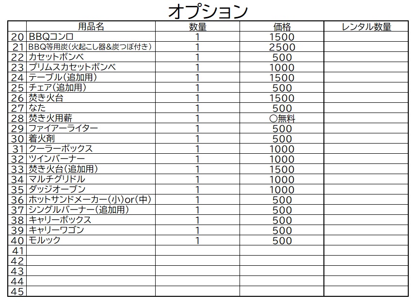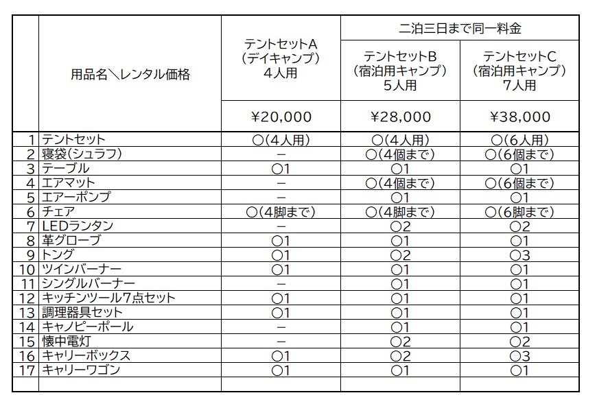 キャンプ道具レンタル