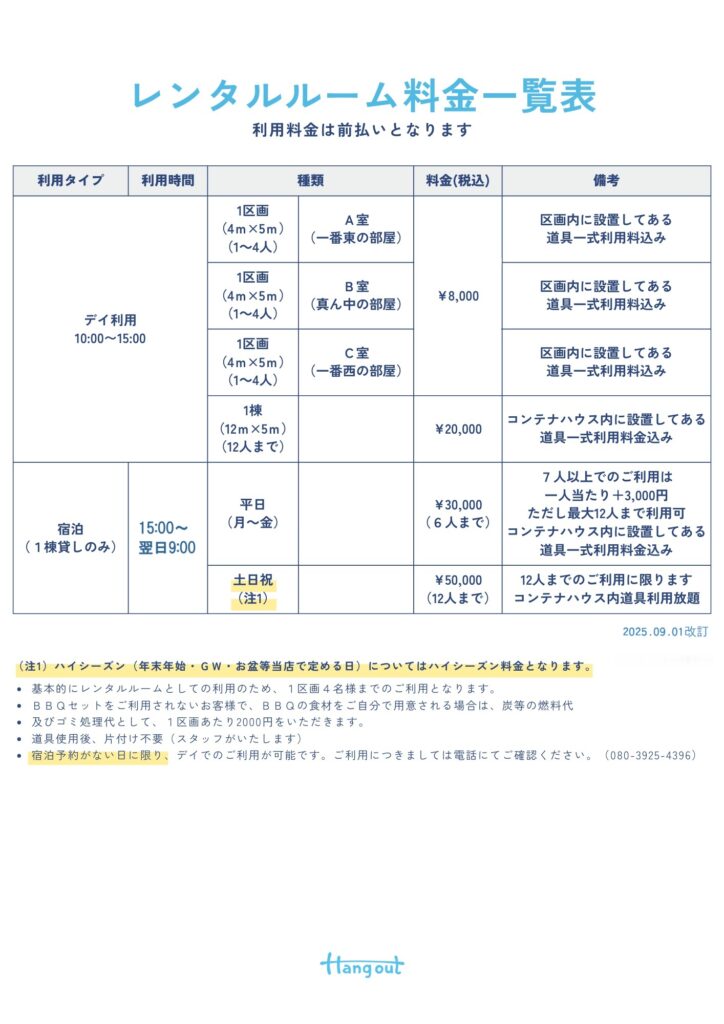 サービス / 料金表